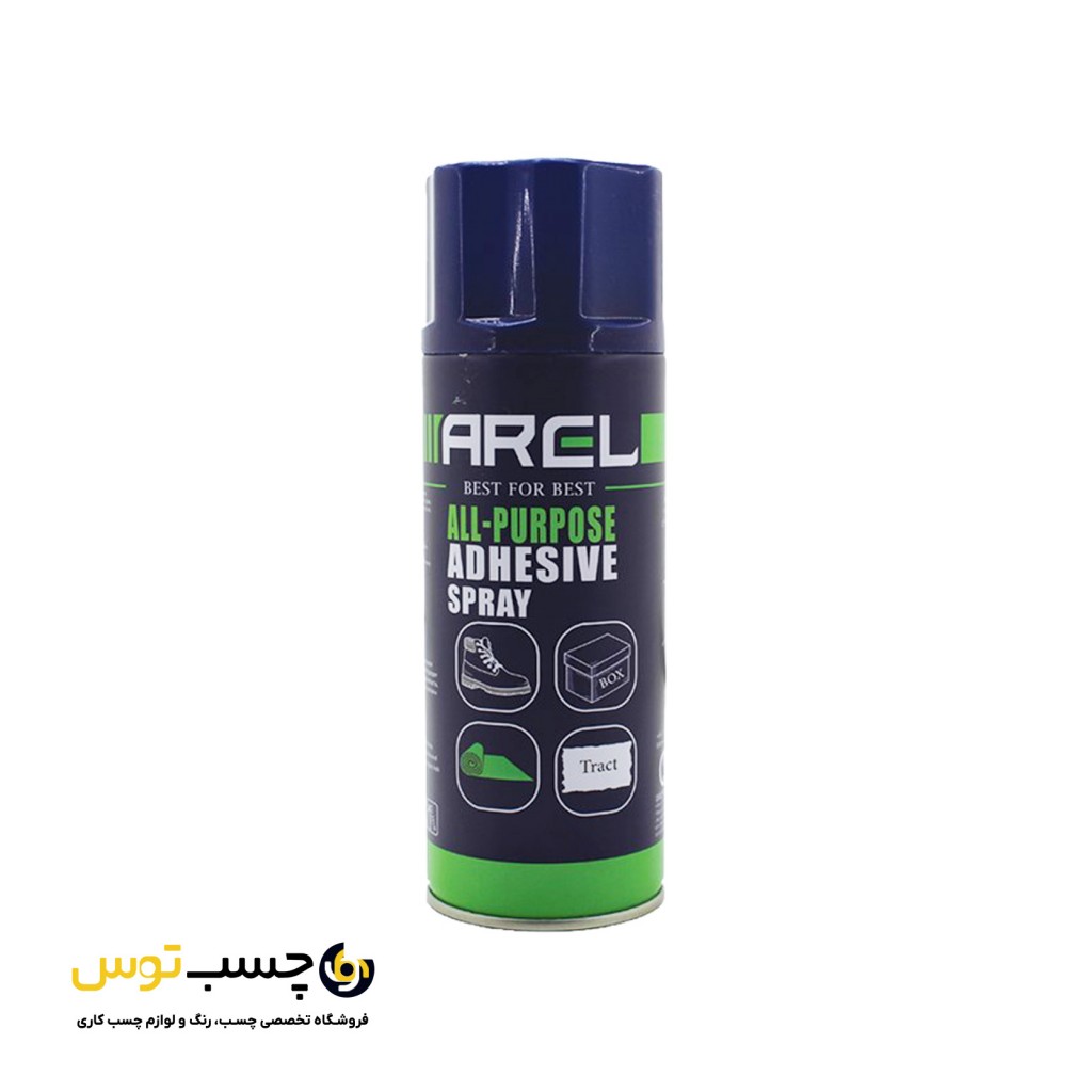 اسپری چسب همه کاره آرل (ALL-PURPOSE ADHESIVE SPRAY) حجم 450 میلی لیتر، این محصول با کاربرد سریع و آسان، استحکام چسبندگی بالا و زمان خشک شدن کوتاه، برای چسباندن سطوح مختلف مانند پارچه، شیشه، فوم، اسفنج، فرش و صنایع دستی، چسباندن انواع تراکت و اعلانات مناسب می باشد.